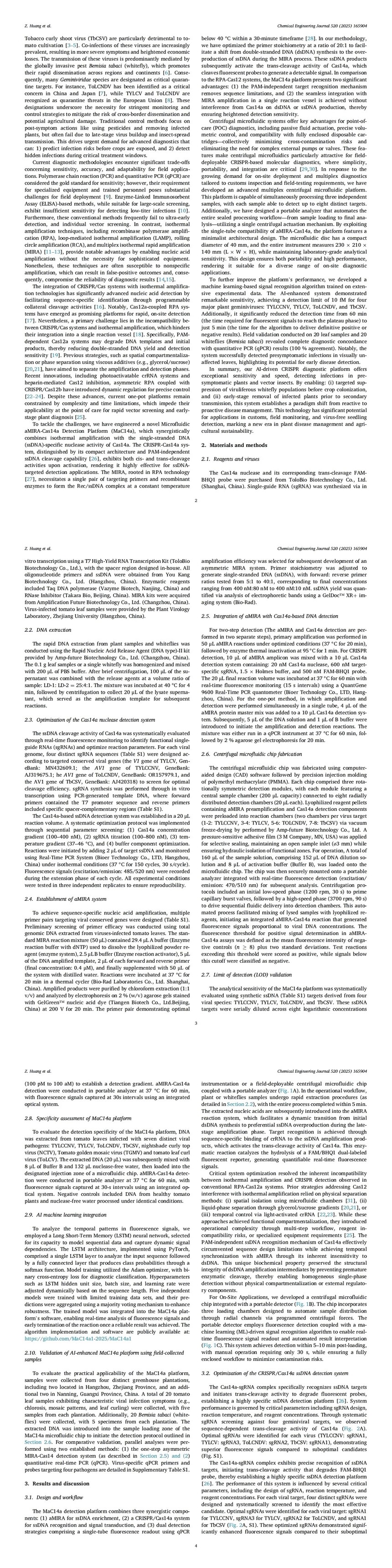 MaC14a: An AI-enhanced CRISPR-Cas14a microfluidic platform for accurate on-site detection of geminiviruses in tomato plants and whiteflies